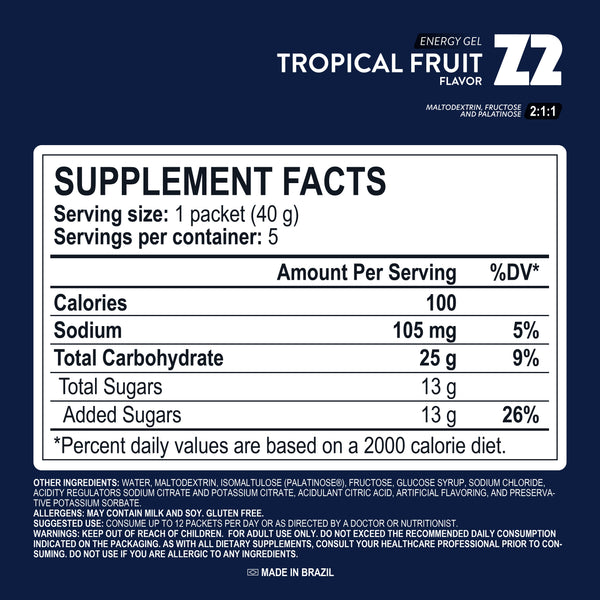 Diseñado para quienes prefieren sabores más neutros sin sacrificar rendimiento, el gel Tropical Fruit entrega energía sostenida con un perfil digestivo amigable.